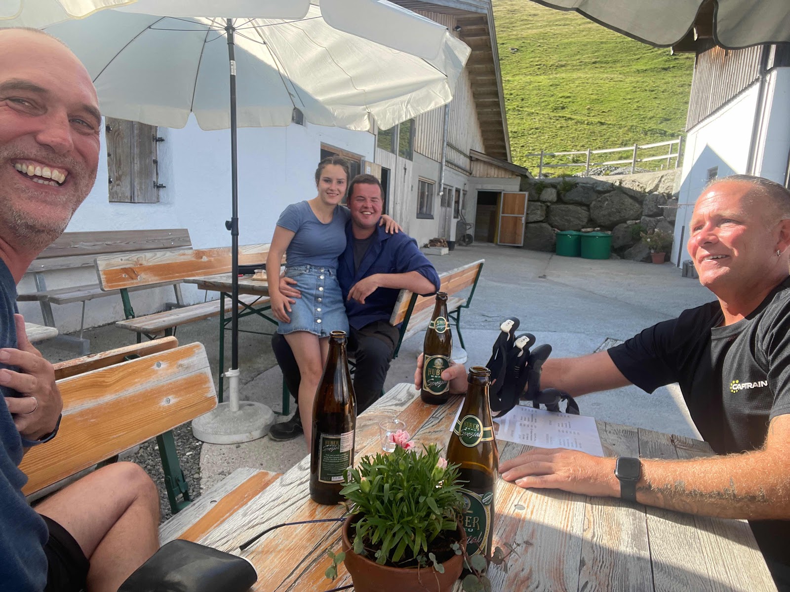 Hier kommen wir mit Alois und Leni ins Gespräch. Die beiden betreiben diese Alm vier Monate im Jahr. Danach ziehen sie mit ihren Kühen wieder ins Tal. Als wir ankamen waren beide mit Traktor und Hubwagen beschäftigt. Um die Gäste zu bewirten wird dann mal schnell alles stehen und liegen gelassen.
